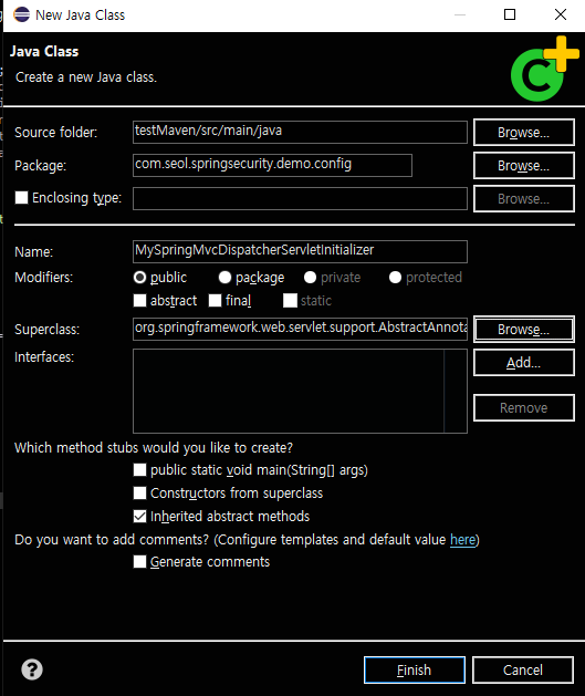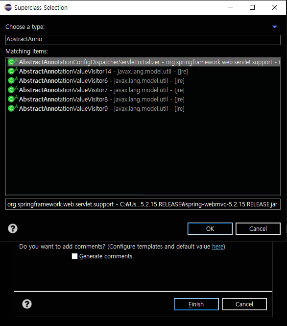 이름은 적당히 지어주고 superclass를 지정해주자.