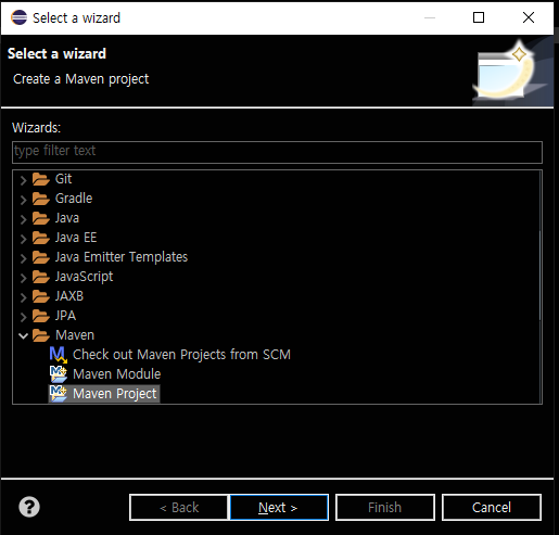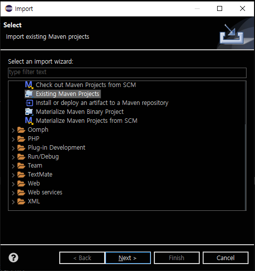 메이븐 프로젝트를 가져올 때 import에서 이걸 선택하면 된다.
