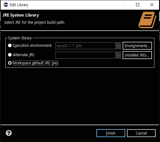 Worksapce defualt JRE를 선택하면