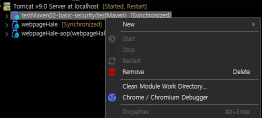 이전 프로젝트를 복붙했기 때뭉네 같은 Context root를 가진 것이다.