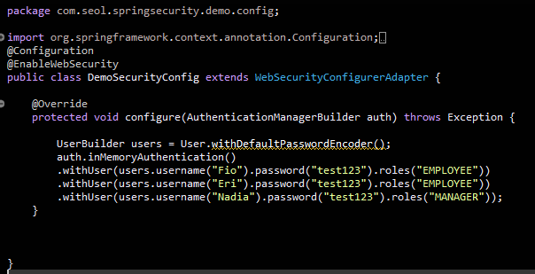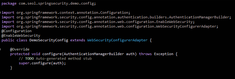 DemoSecurityConfig 클래스에서 Override 해주자.