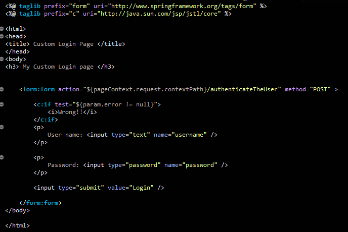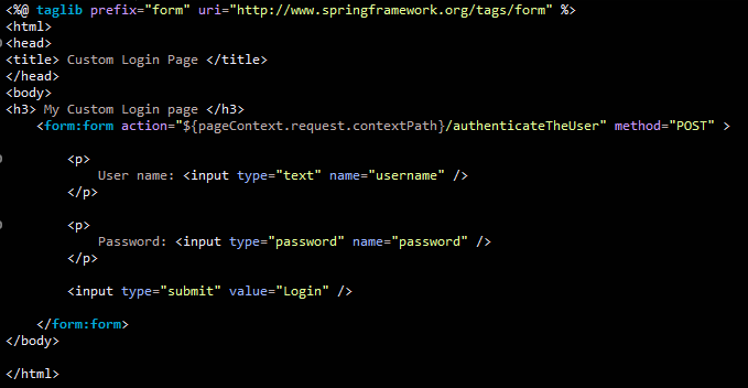 로그인 폼은 데이터를 특정 URL에 포스트한다. "/authenticateTheUser"