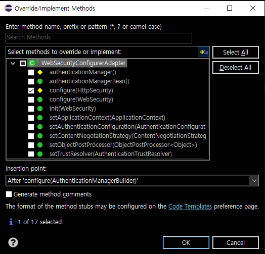 httpSecurity 를 override하여 메소드를 만들어주자.