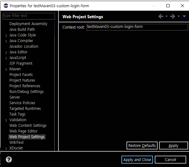 전에 쓰던 프로젝트를 복붙하여 새로 만들고 context root도 새로 바꾸어주자